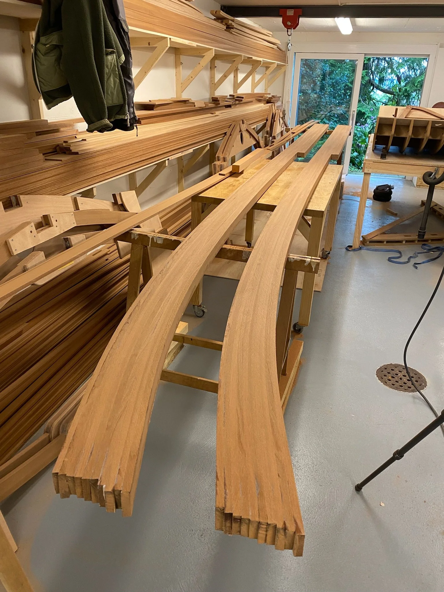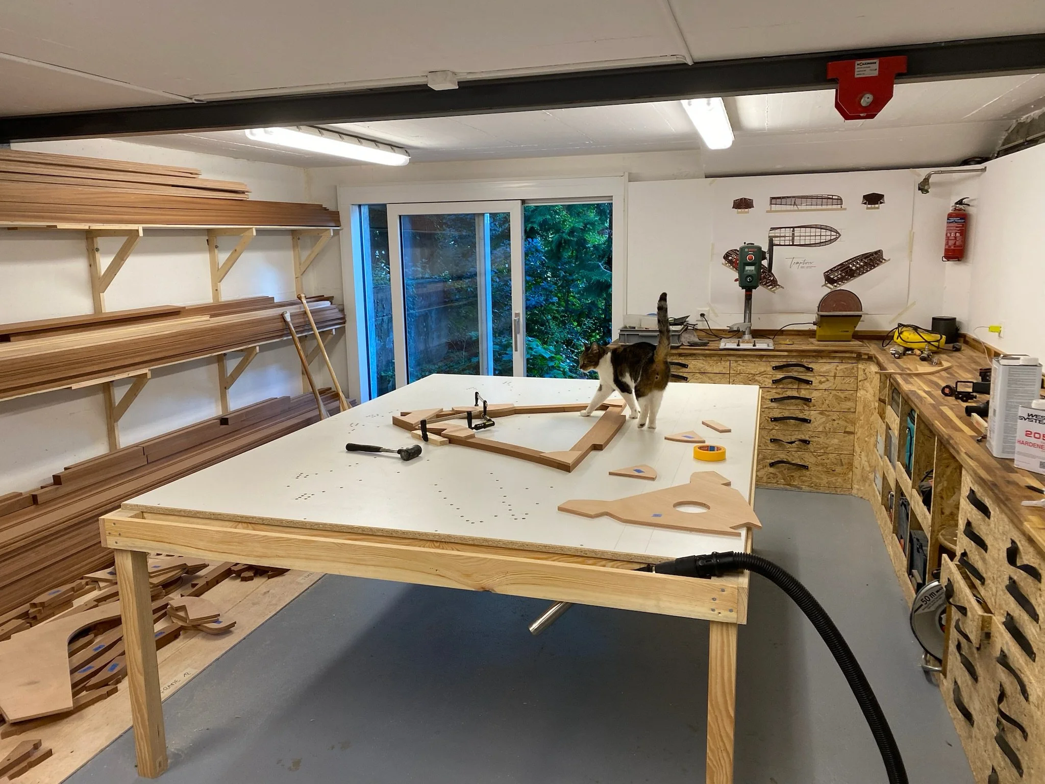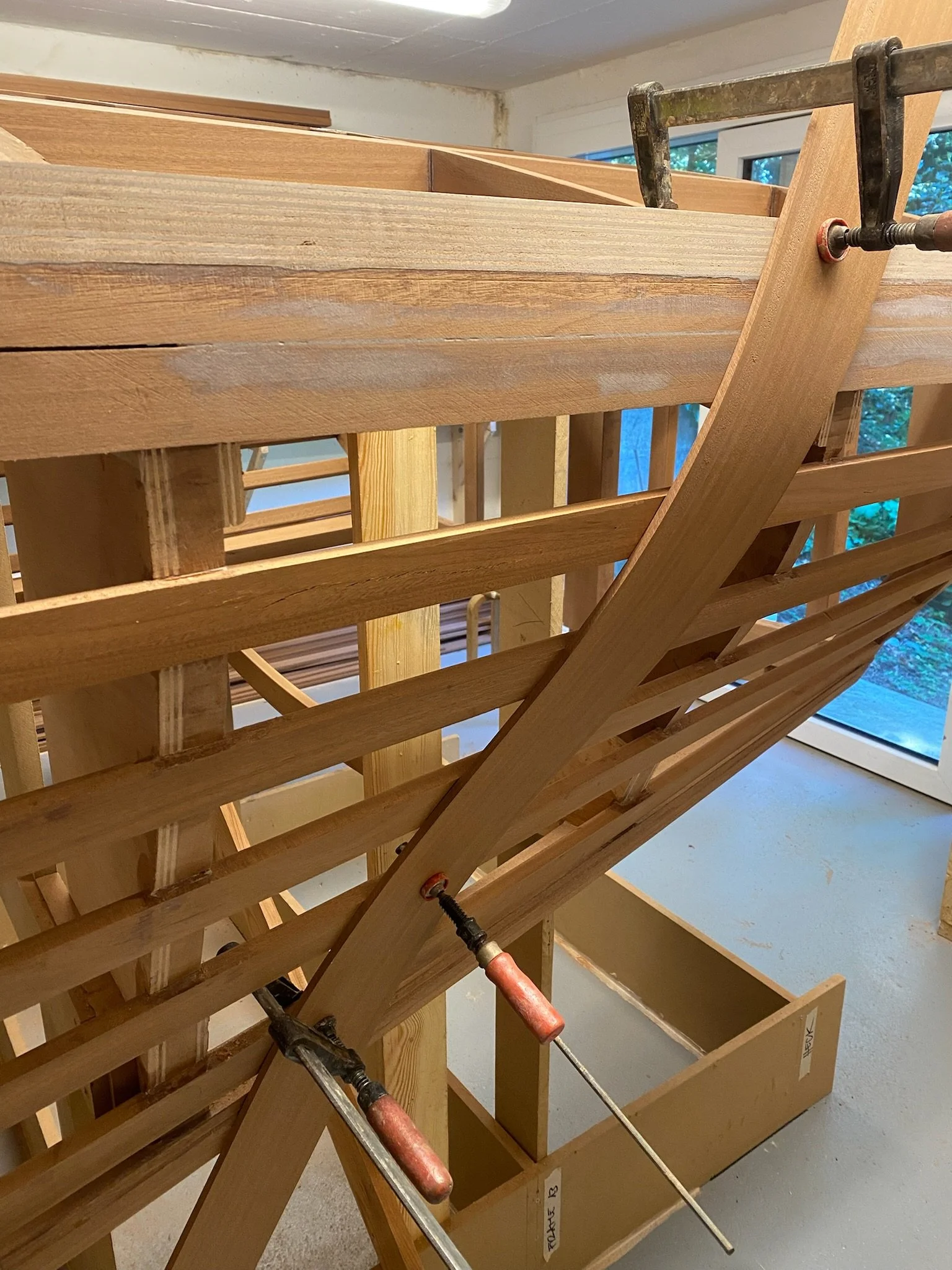 Im Januar war es endlich so weit: Die Shear Line stand an. Ein echtes Grossprojekt. Erst mussten Platten vorbereitet werden, dann wurde gefräst, laminiert, gehobelt, angepasst – und am Ende natürlich verleimt. Jeder einzelne Schritt war aufwendig, aber am Ende hat sich’s mehr als gelohnt. Es war einer dieser Bauabschnitte, bei dem man merkt, wie aus Teilen Form wird.