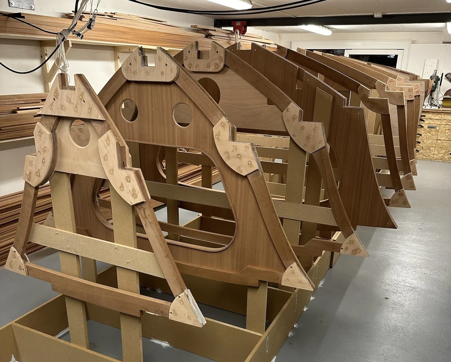 Direkt danach kamen die Side Battens. Auf den ersten Blick harmlos – aber dann steht da diese Zahl: 180 Kerben. Jede muss sitzen, jede muss passen. Und zwar in drei Richtungen. Ich habe mir dafür eine Fräshilfe überlegt, die richtig gut funktioniert hat. Trotzdem blieb’s viel Handarbeit. Besonders vorn beim Stem musste ich lernen, dass Holz auch mal bricht – aber das lies sich retten.